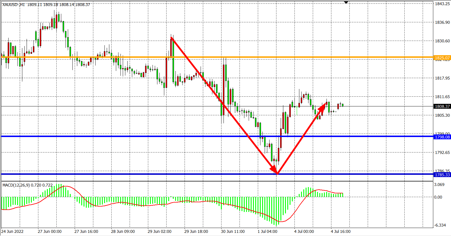 备选策略:在1798.00之上看涨,目标1815.00          1825.00