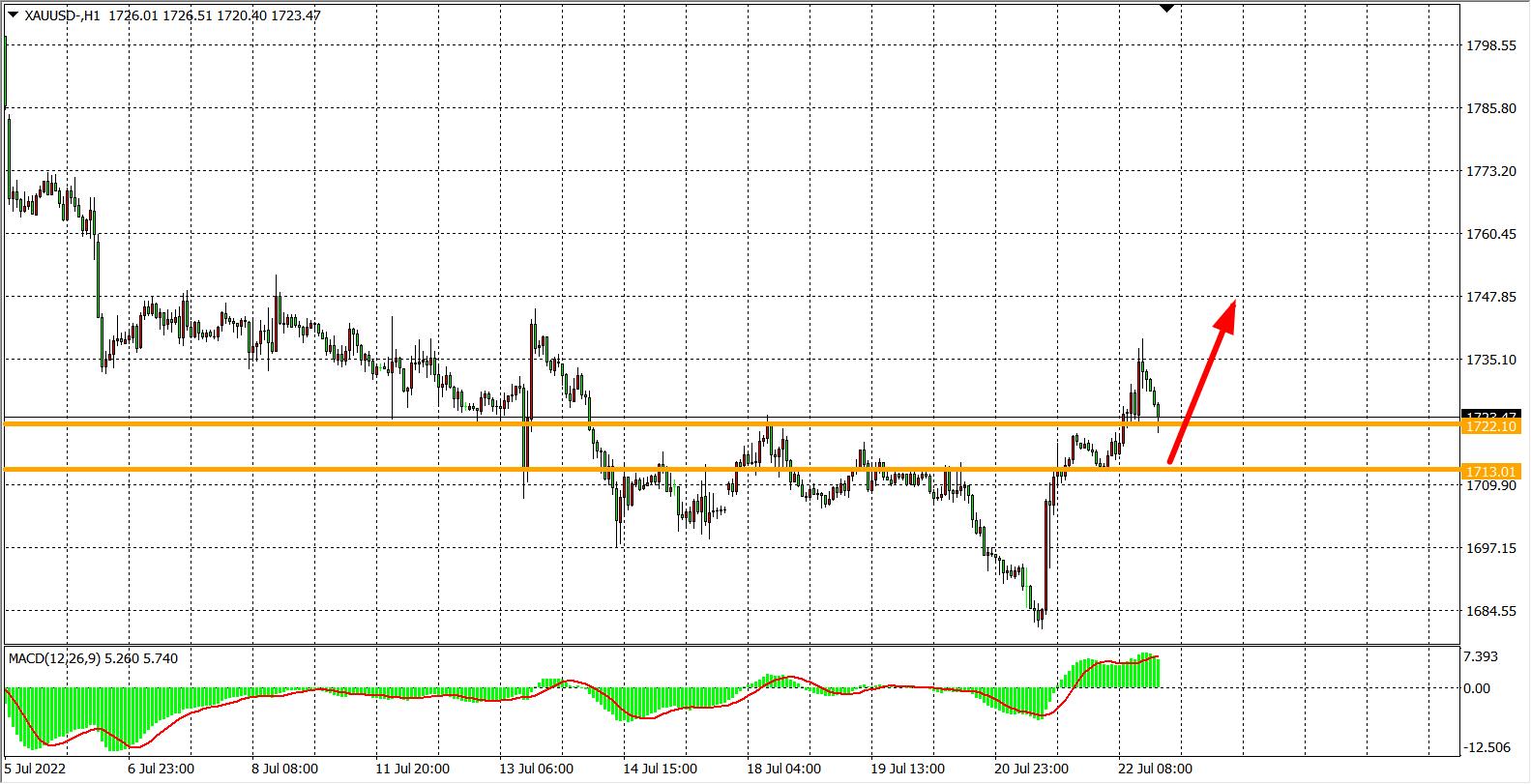 交易策略:在1713.00之下看跌,目标1700.00          1680.00