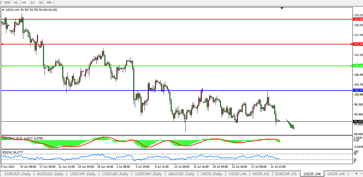 美国原油USOil   4小时图