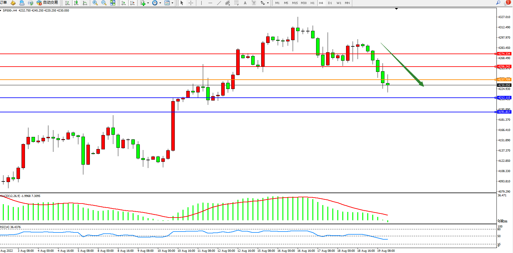 标普500指数8月19日(周五)收盘下跌55.44点,跌幅1.29%,报4228.30点;美联储需要继续提高借贷成本以控制高通胀,不过仍在讨论加息的速度和应该加到多高。