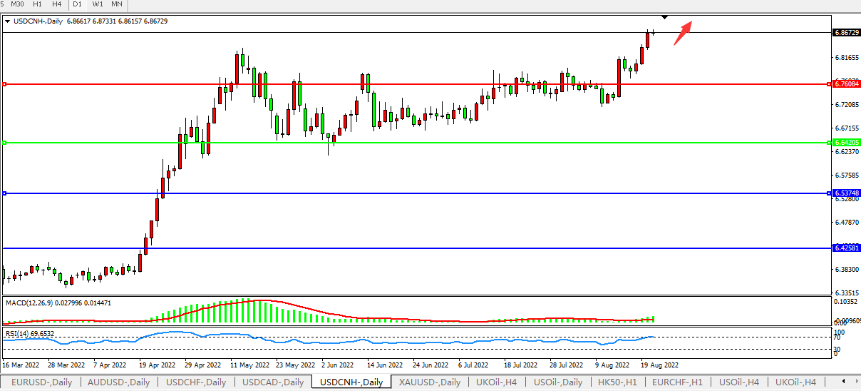 交易策略:在6.6420之上,看涨,目标价位为6.7600、6.8870