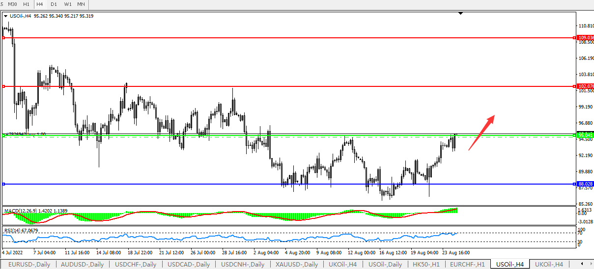 美国原油USOil   4小时图