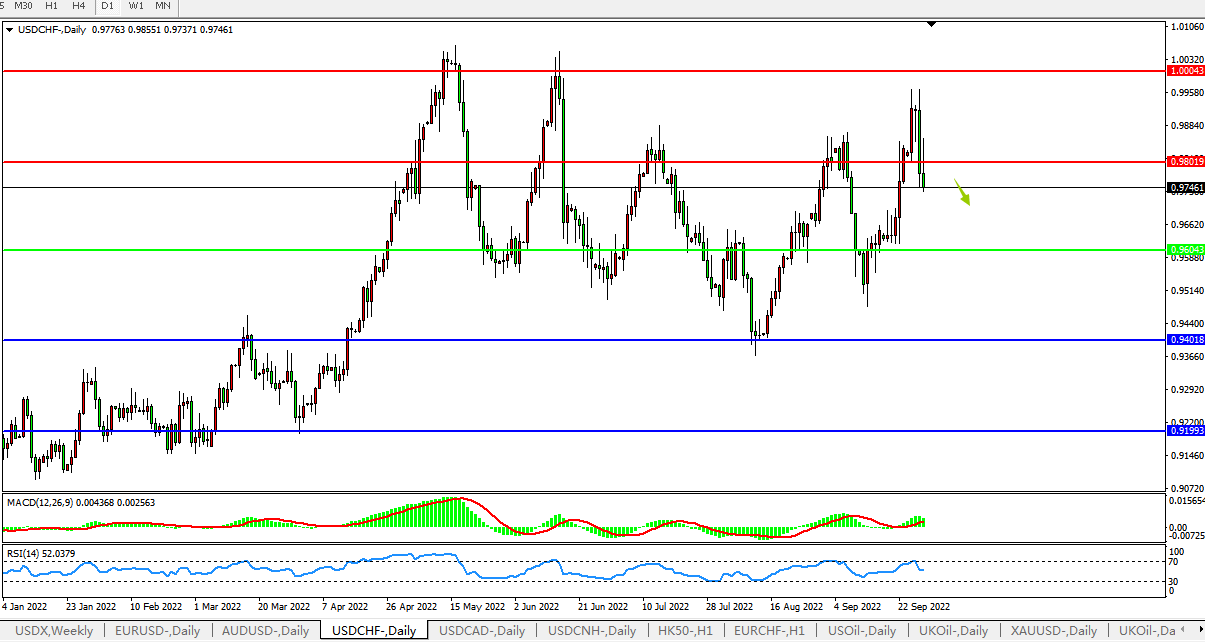 美元兑瑞郎USDCHF 日线图