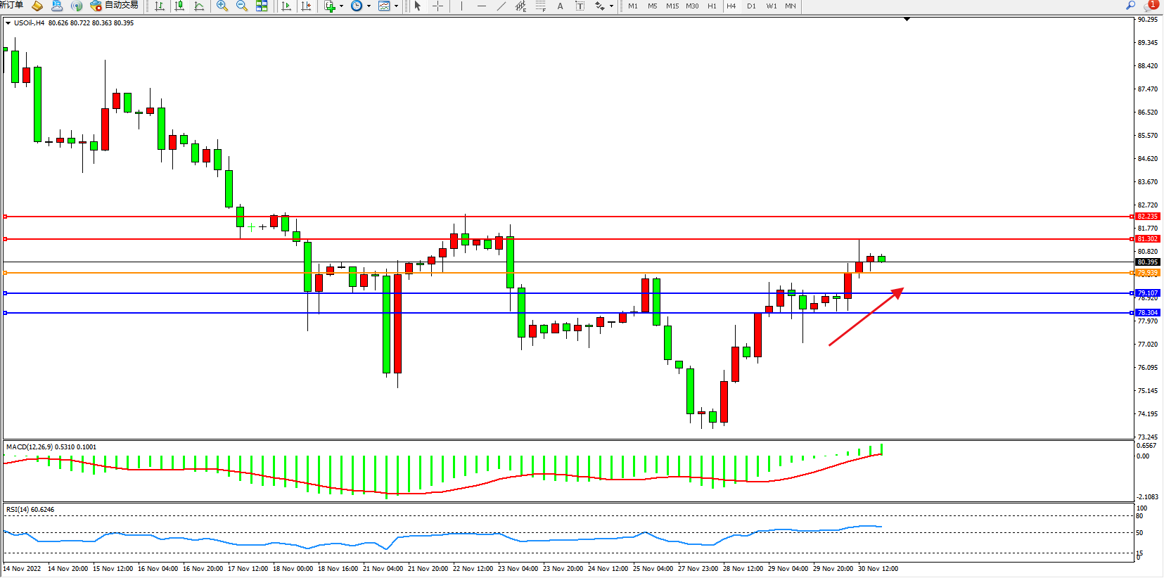 原油维持80.395附近震荡,美国至11月25日当周EIA原油库存 -1258万桶,预期-275.8万桶,前值-369万桶。俄克拉荷马州库欣原油库存 -41.5万桶,前值-88.7万桶。