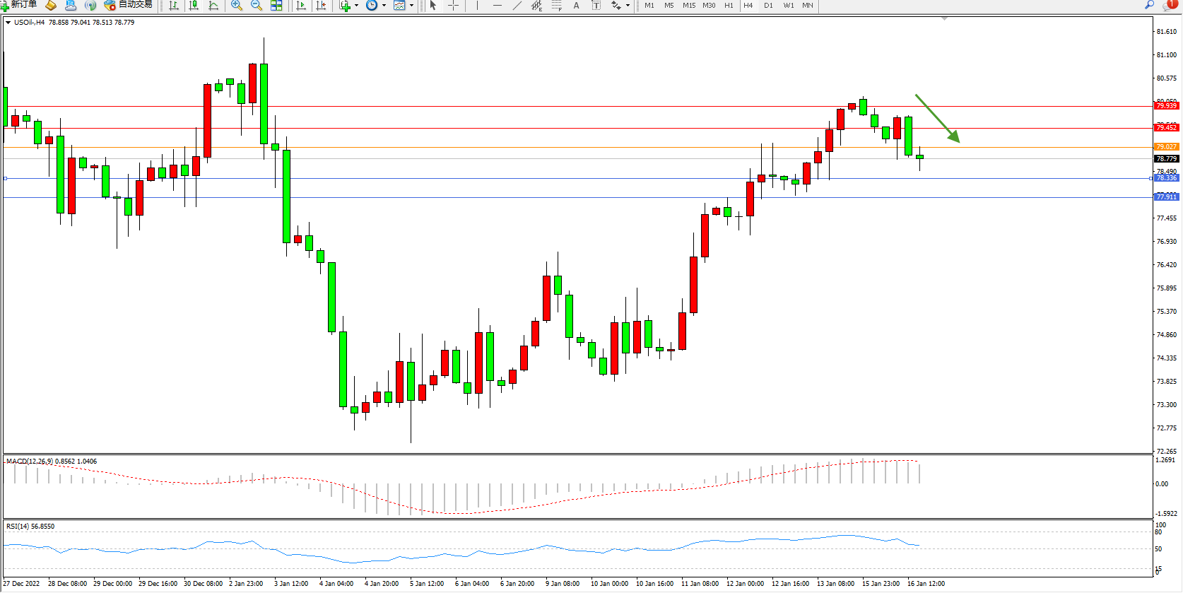 备选策略:79.027上方看涨,目标79.452、79.939