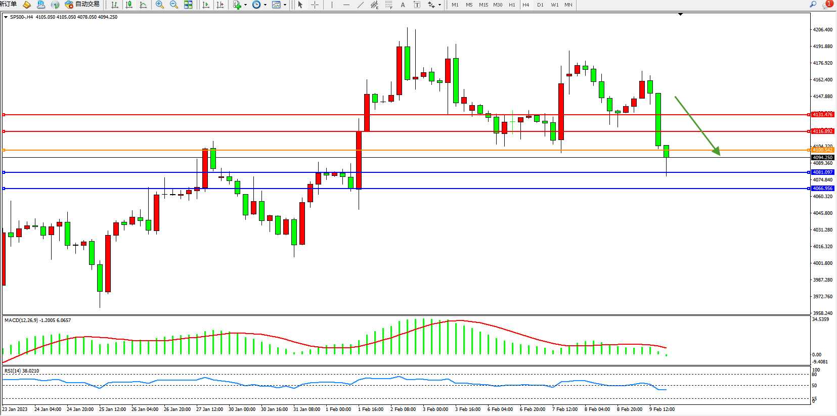 标普SP500——4小时K线图显示:
