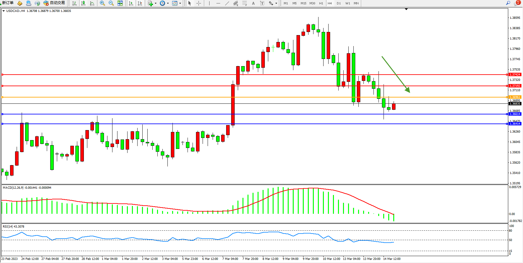 交易策略:1.36961下方看跌,目标1.36614  1.36414