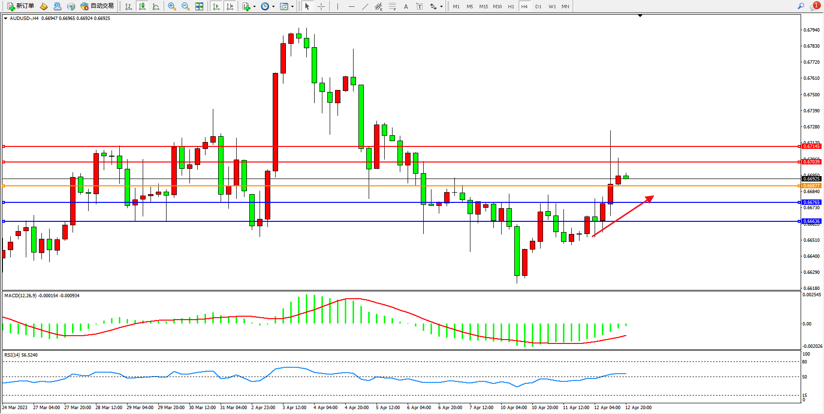 交易策略:0.66877上方看涨,目标0.67039  0.67145