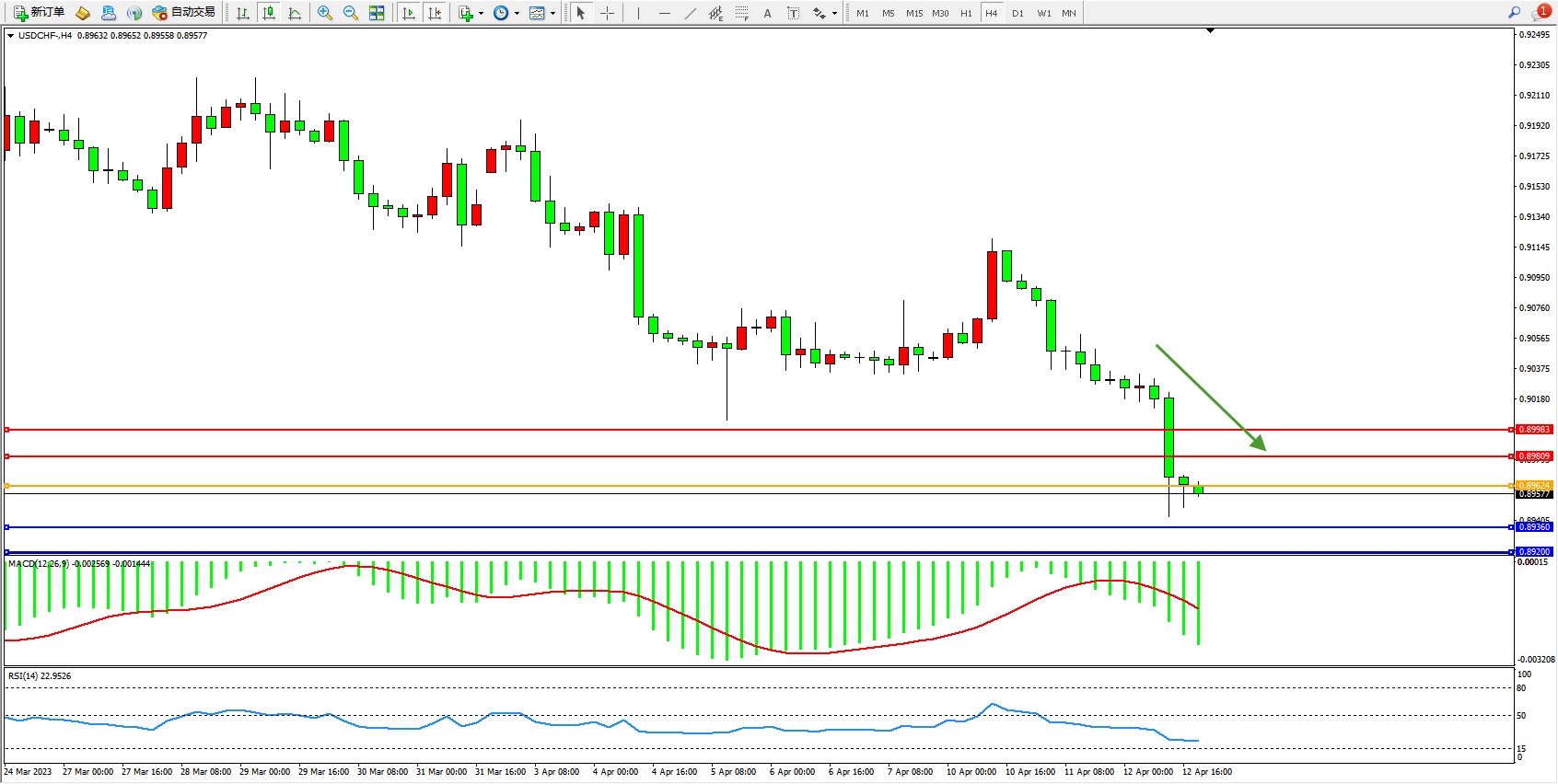 美元瑞郎USDCHF——4小时K线图显示: