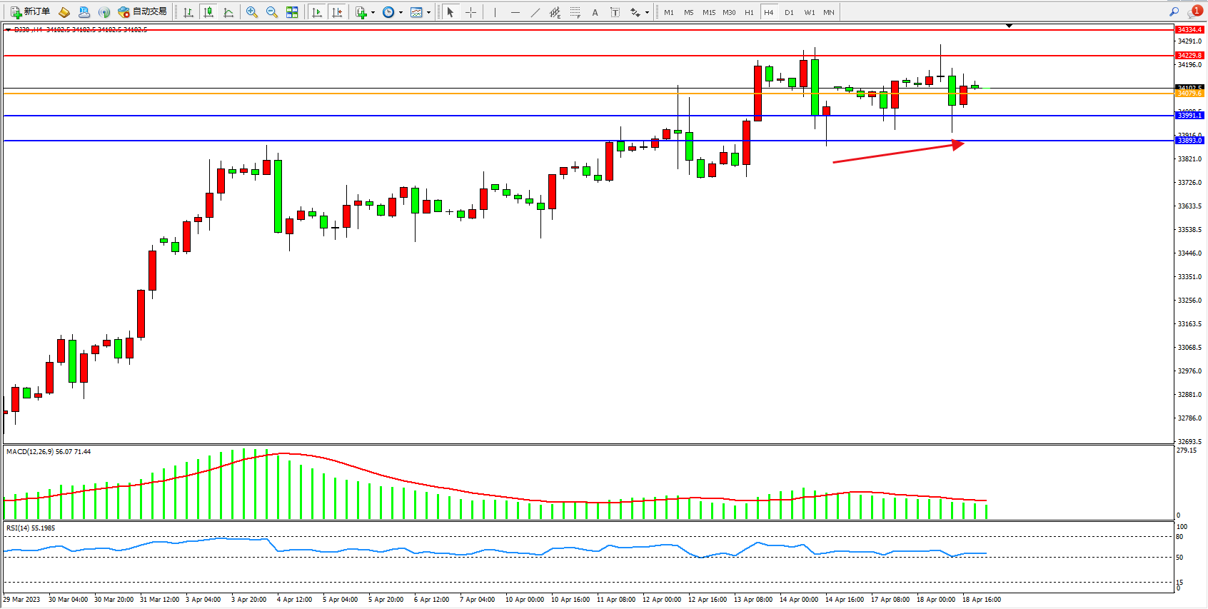 交易策略:34079上方看涨,目标34229 34334