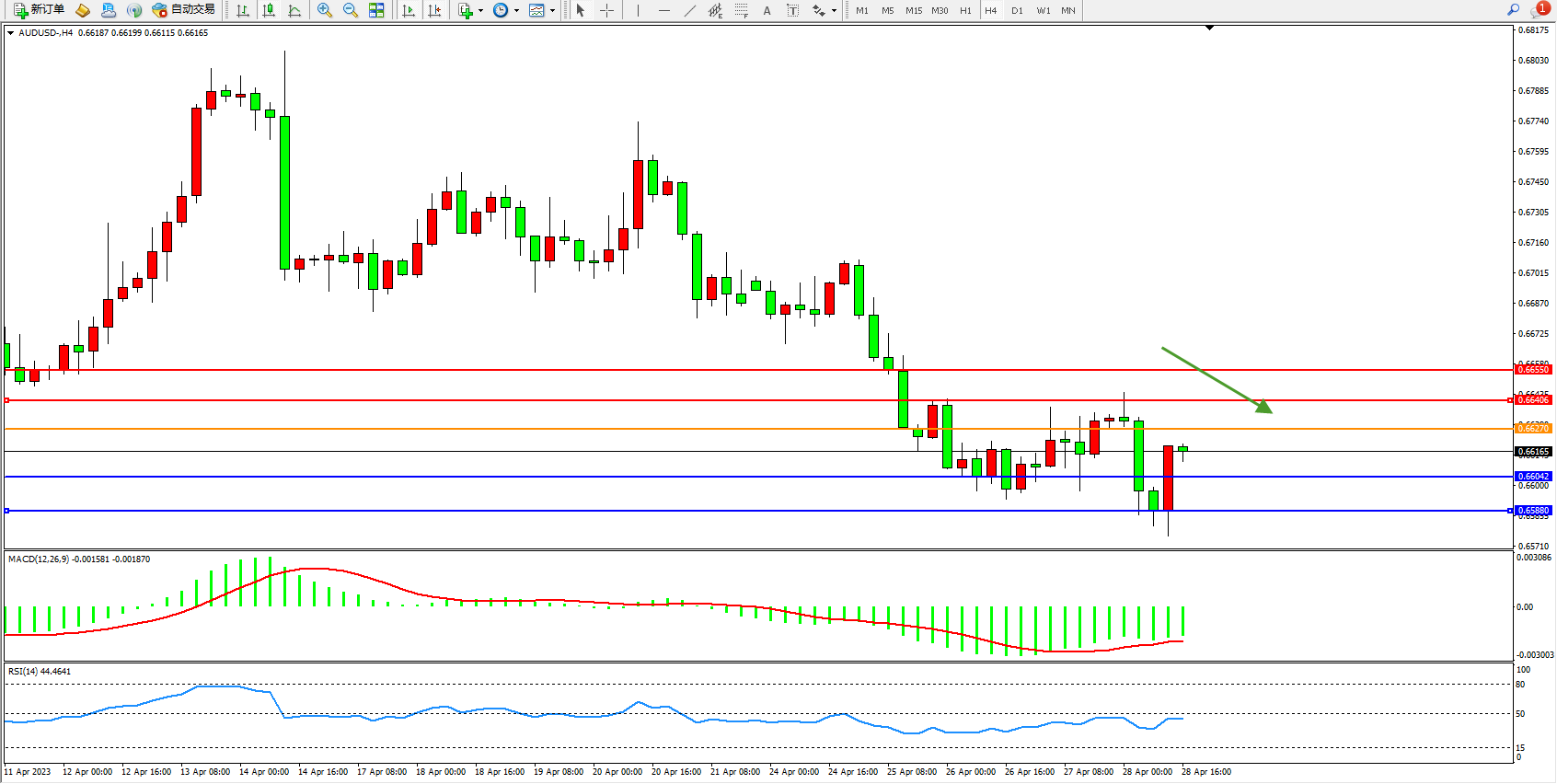 交易策略:0.66270下方看跌,目标0.66042  0.65880