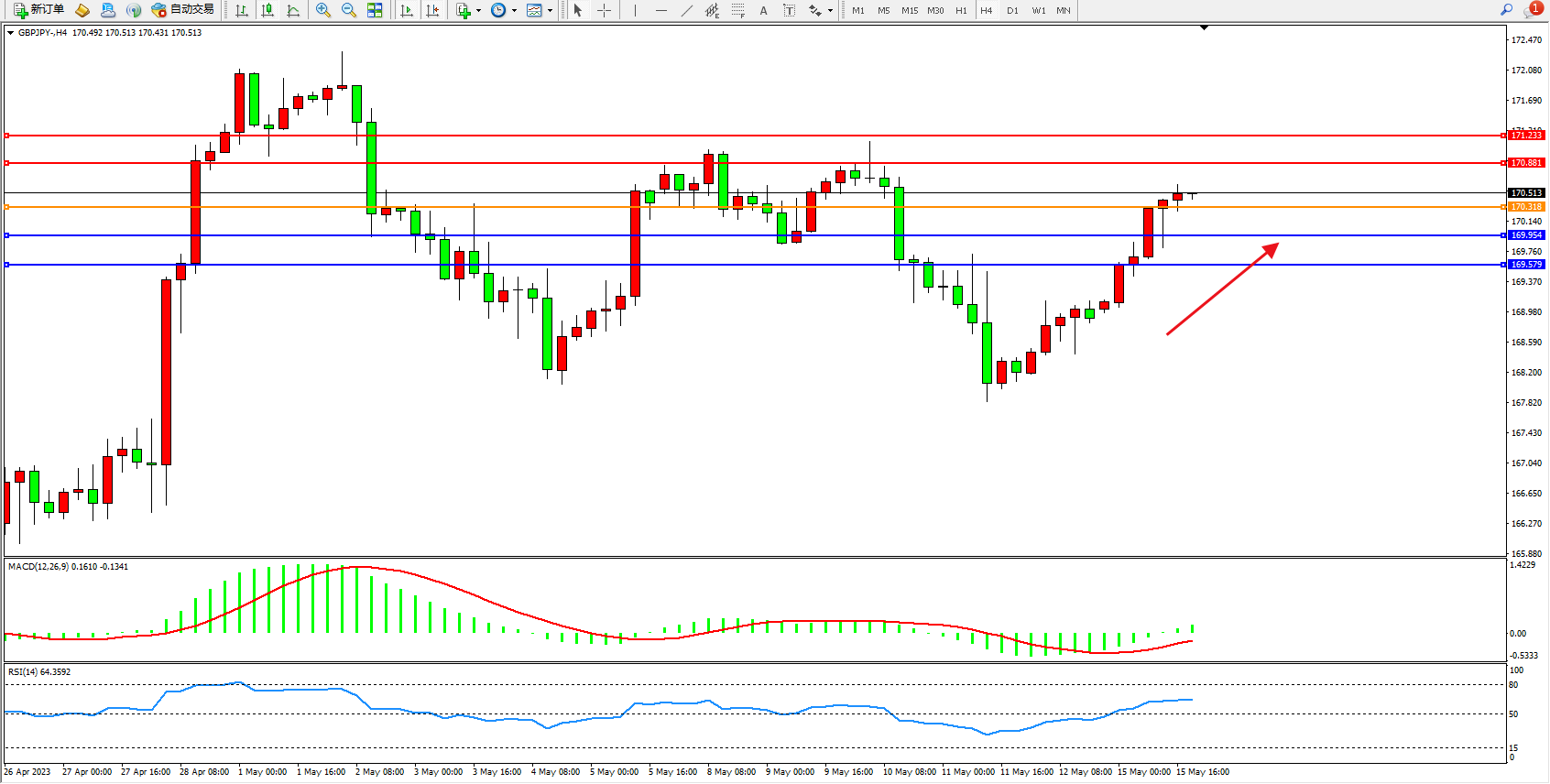 交易策略:170.318上方看涨,目标170.881 171.233