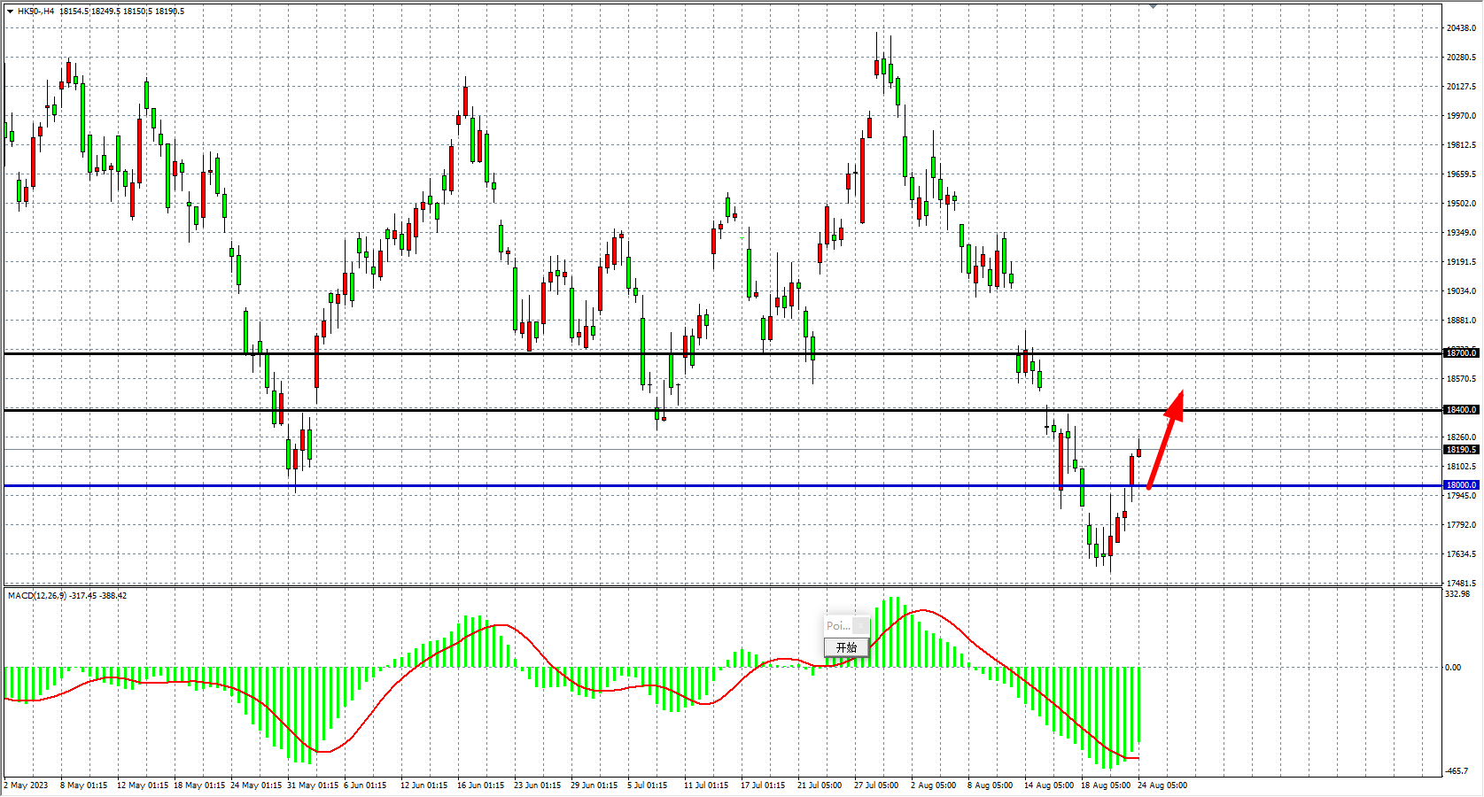 阻力位:18400 18700