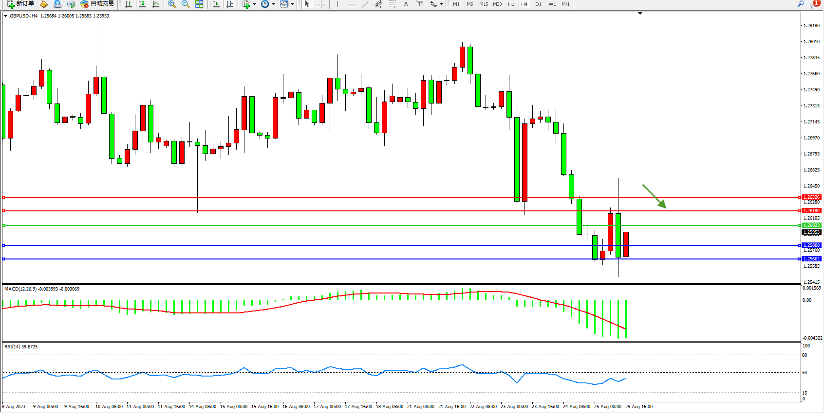 英镑美元GBPUSD ——4小时K线图显示: