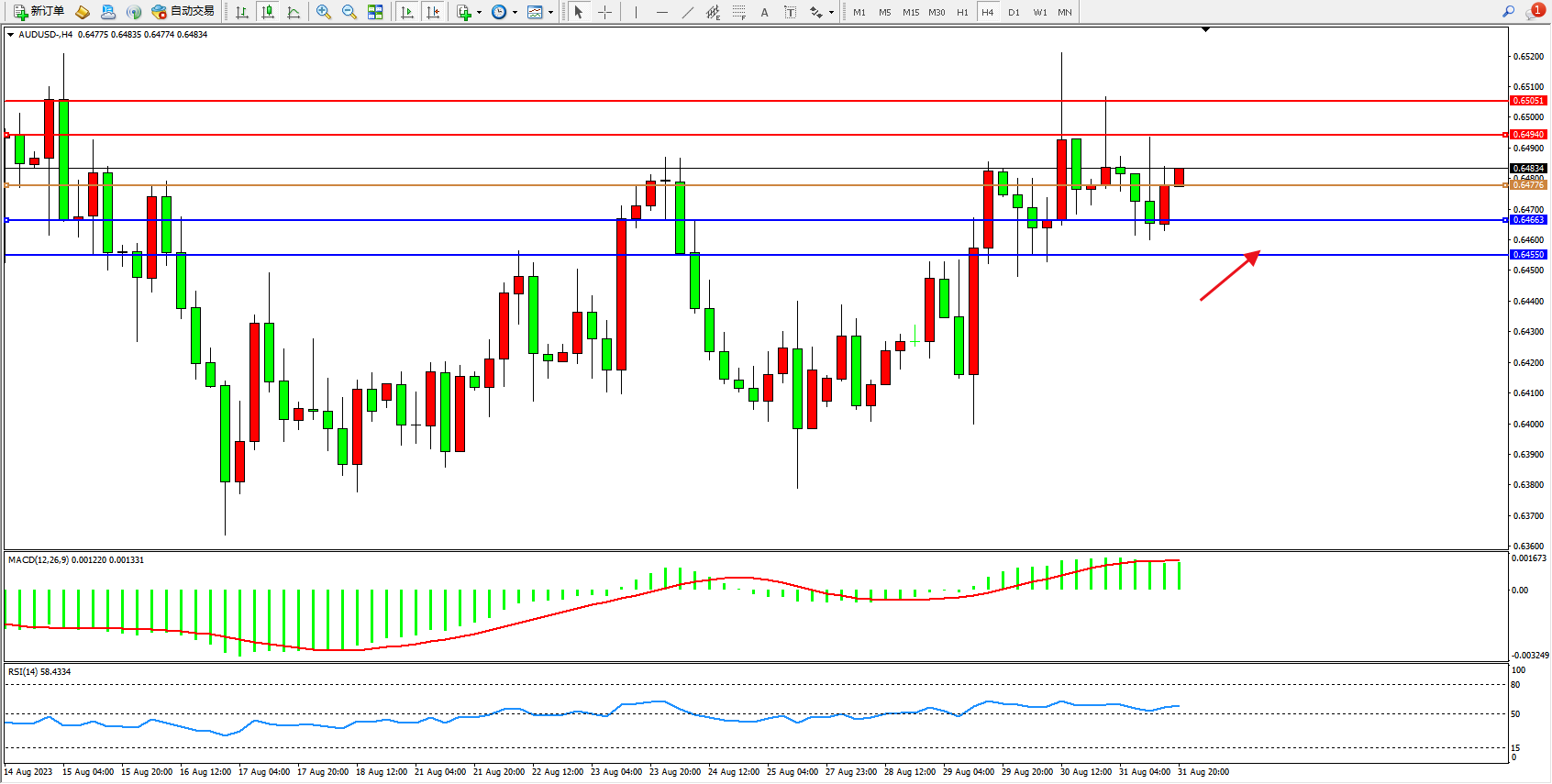 交易策略:0.64776上方看涨,目标0.64940  0.64051
