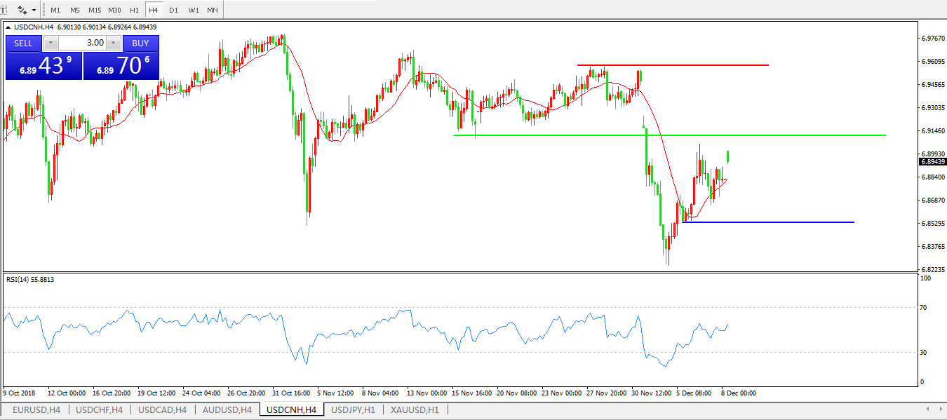 备选策略: 在6.9100之上,看涨,目标价位为6.9300,然后为6.9557。