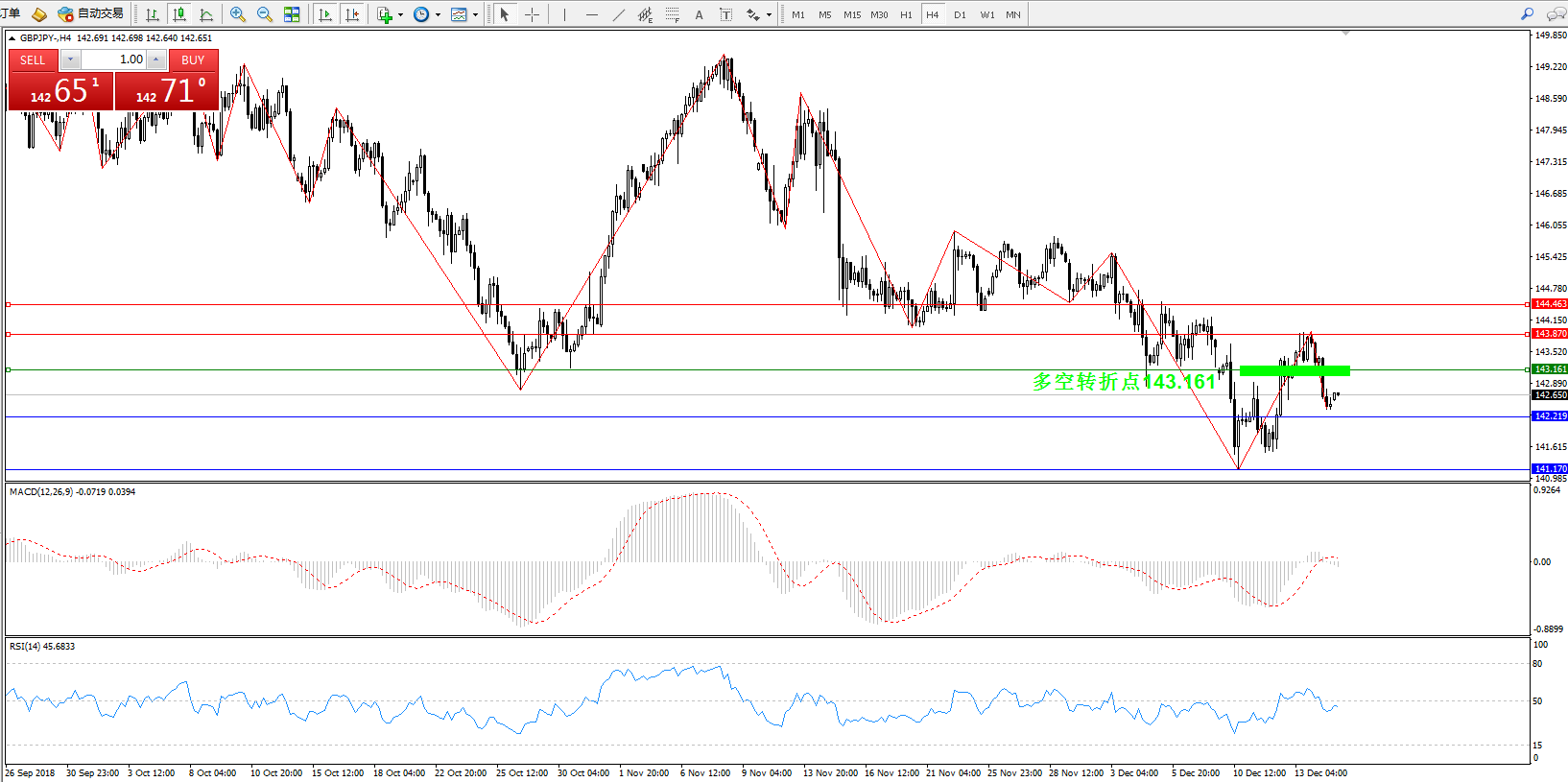交易策略:143.161上方看涨,目标143.870144.463