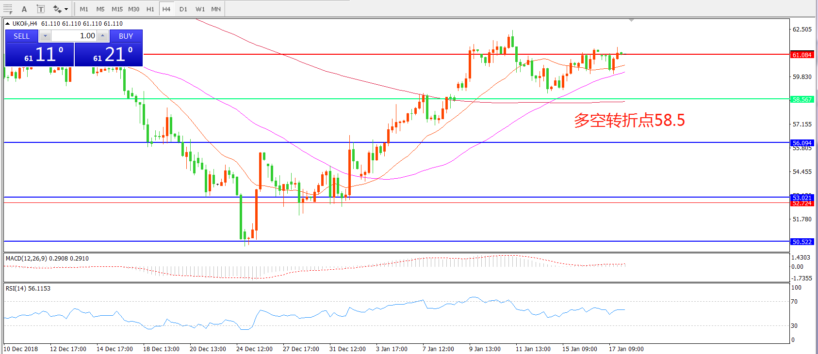 交易策略:在58.50之上看涨,目标61.00 63.50