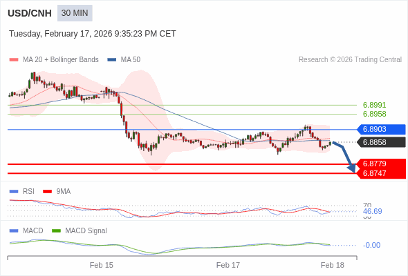 美元/人民币 当日内 : 看跌,在 6.8903 之下。