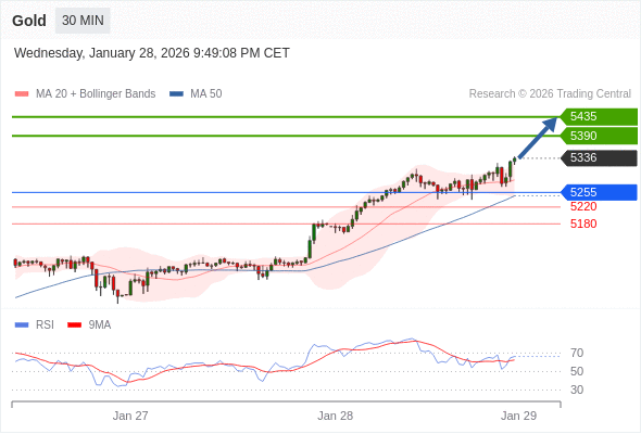交易策略: 在 5255 之上,看涨,目标价位为 5390 ,然后为 5435 。