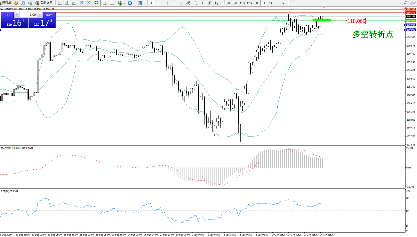美元兑日元上涨0.24%110.16,在盘中高点108.18附近;在中美一阶段贸易协定签约尘埃落定后,市场风险偏好情绪再度回暖,令避险买需再度退散,这令美元兑日元汇价在之前短暂歇脚之后重觅涨势。同时,美国零售销售数据整体也利多美元表现。签署的第一阶段贸易协议确认了2019年夏天以来贸易谈判的进展。协议的细节大致与预期相符,因而淡化了对市场的冲击。