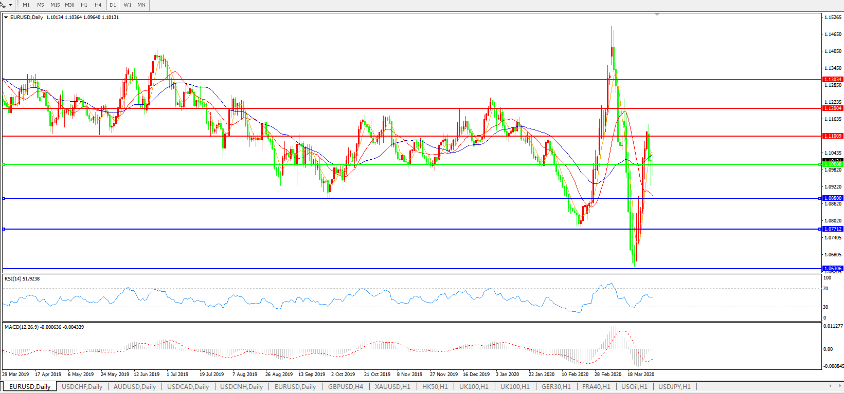 欧元兑美元EURUSD   日线图: