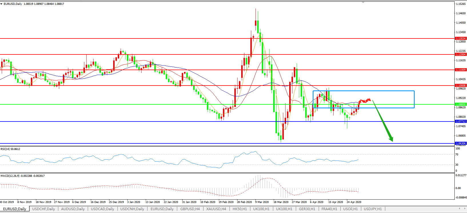 疫情肆虐导致的全球范围内的停产停工情况逐步好转,美国及欧元区都在提复产复工,油价似乎止跌开始有反弹的迹象,股市也表现的不错,昨晚的美联储利率决议也中规中矩,虽无新意但也兢兢业业,今晚19:45分的欧央行利率决议及后续的央行掌门拉加德讲话将带领我们了解亚欧大陆另一端的庞大经济体的最新货币政策动向,十分值得期待!