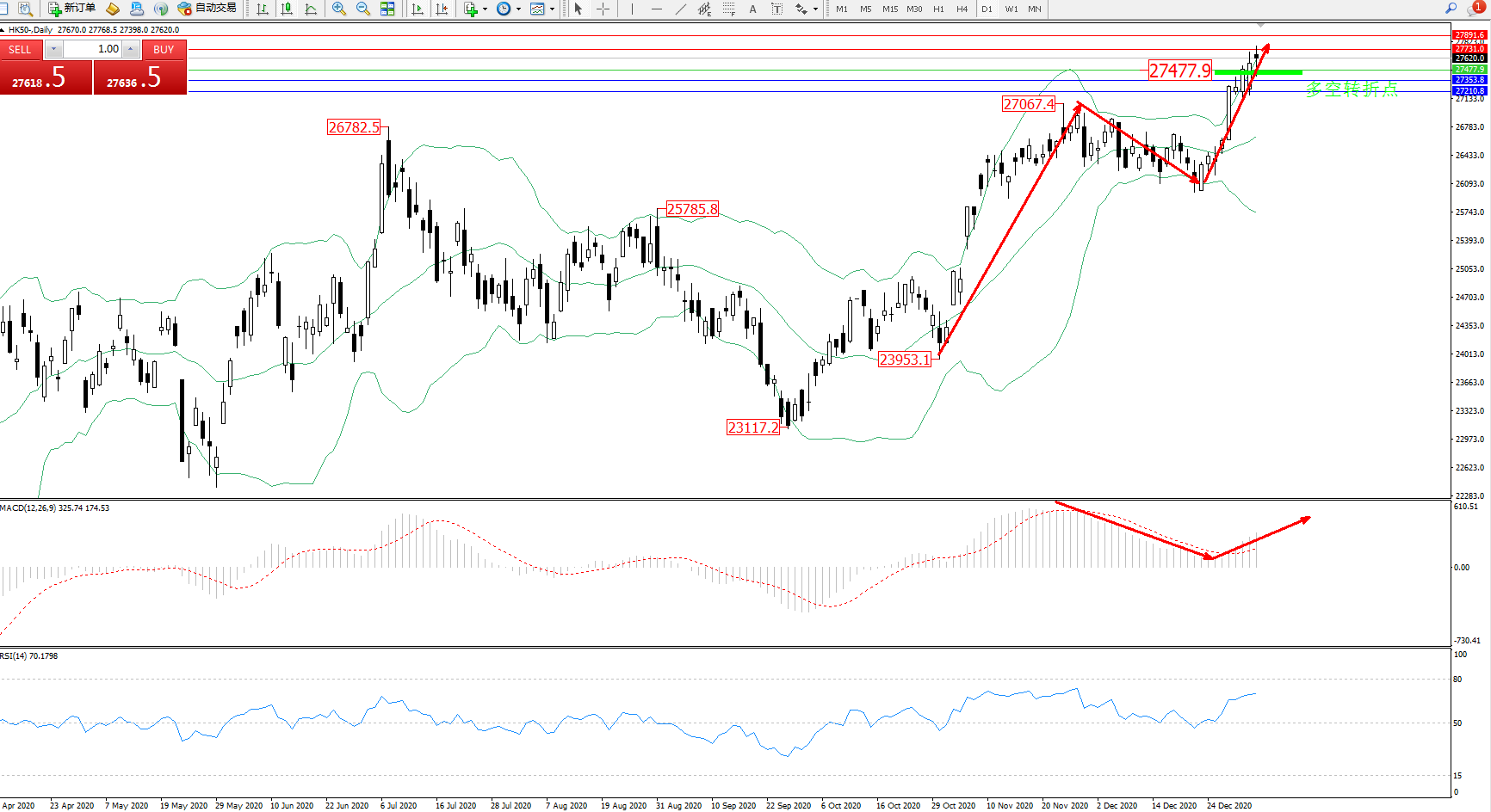 交易策略:27477上方看涨,目标27731、27891