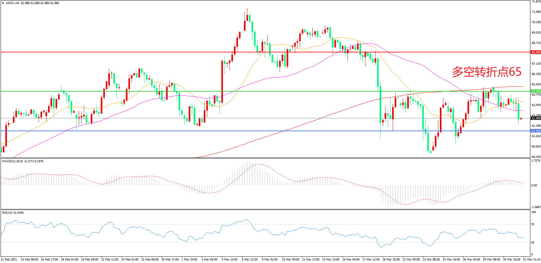 周三(3月31日),根据美国能源信息署公布的EIA数据显示,当周原油库存下降87.60万桶,降幅不及预期,但精炼油库存却出人意料地大幅增加,布伦特原油震荡走低,收报62.98美元/桶。OPEC+联合技术委员会议结束后,并未做出任何产油方面的政策建议,交易者正在密切关注今天的OPEC+产油政策会议,在此次会议上将会确定5月份的原油产量。