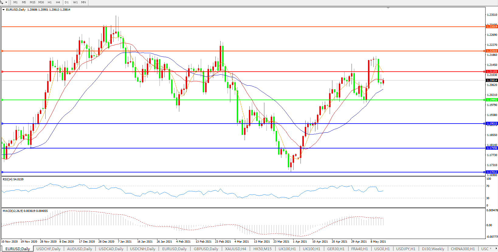 欧元兑美元EURUSD   日线图:
