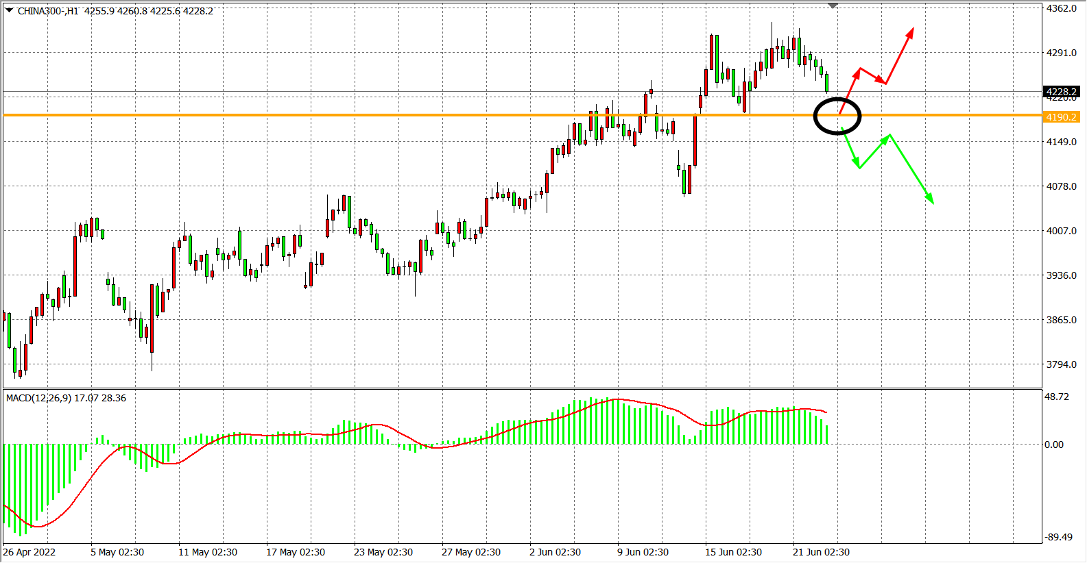 备选策略:在4190.00之下看跌,目标4060.00            4000.00