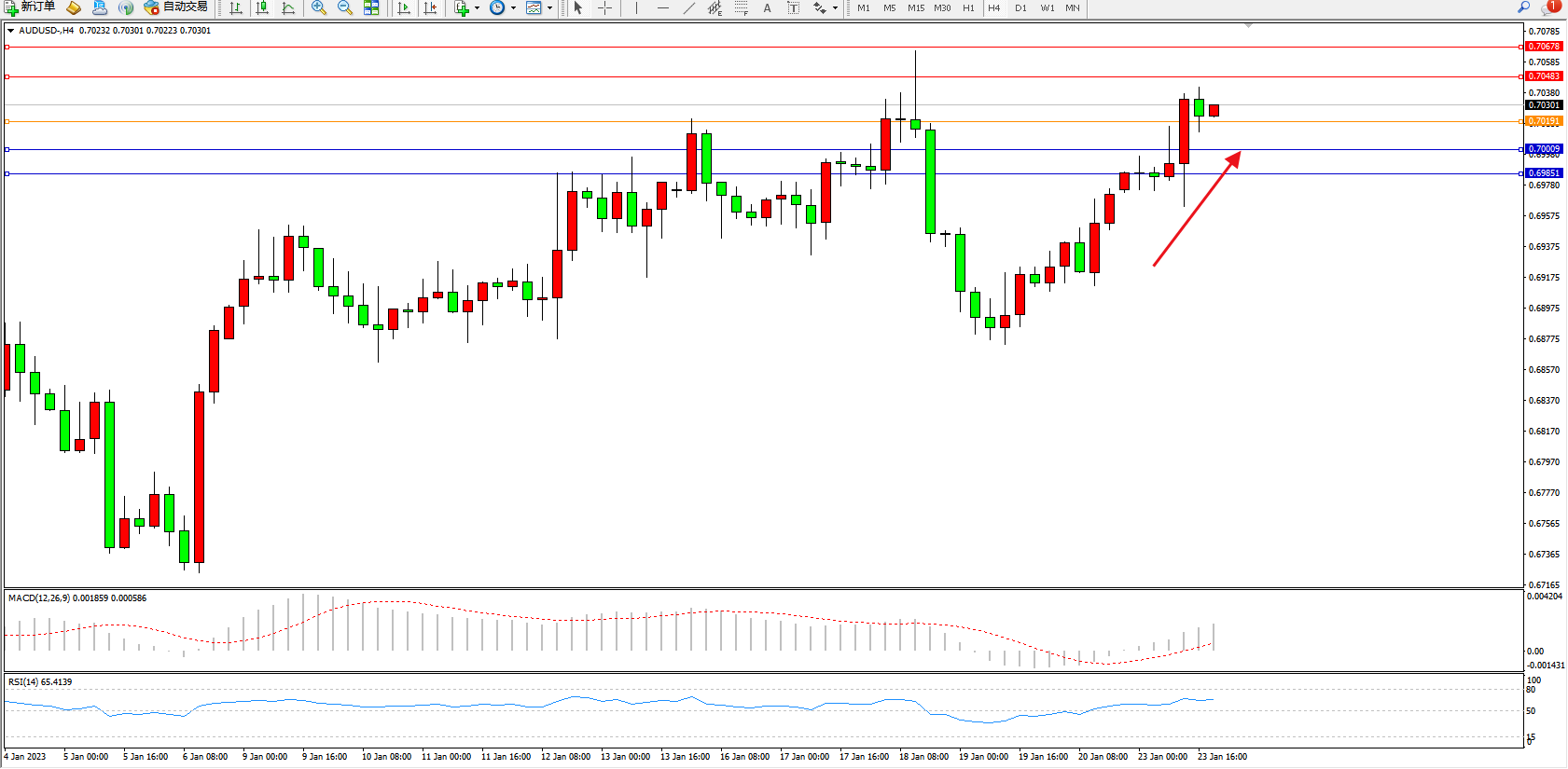 交易策略:0.70191上方看涨,目标0.70483、0.70678
