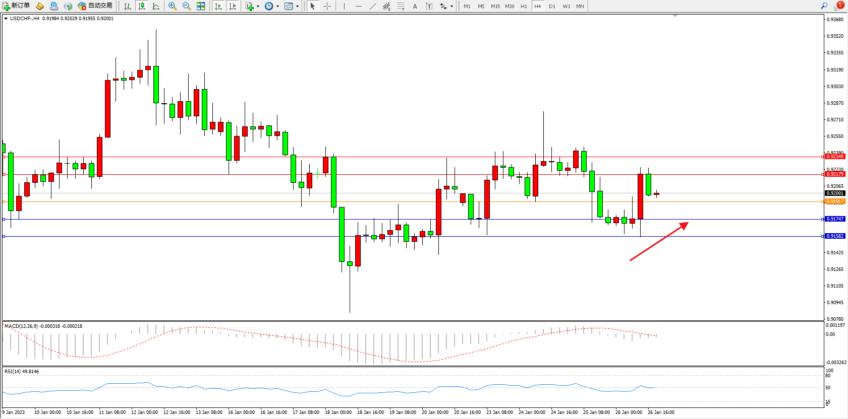 美元瑞郎USDCHF——4小时K线图显示: