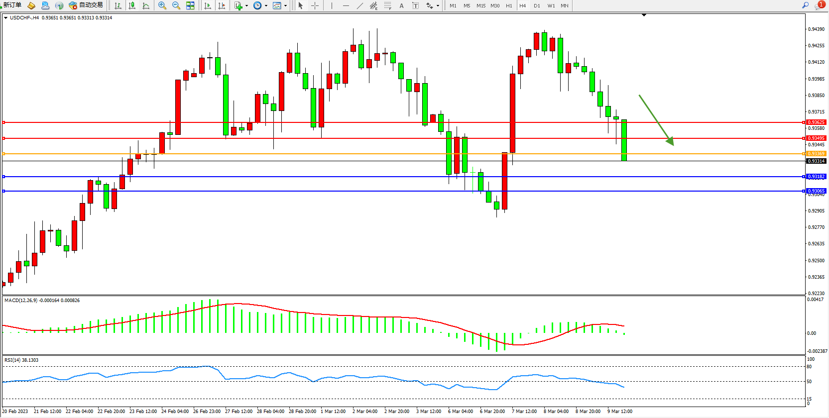 交易策略:0.93369下方看跌,目标0.93182  0.93065