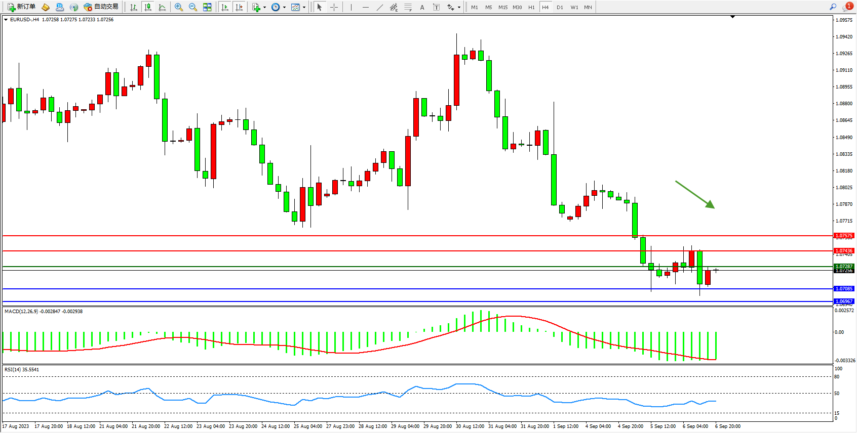 交易策略:1.07287下方看跌,目标1.07085  1.06967