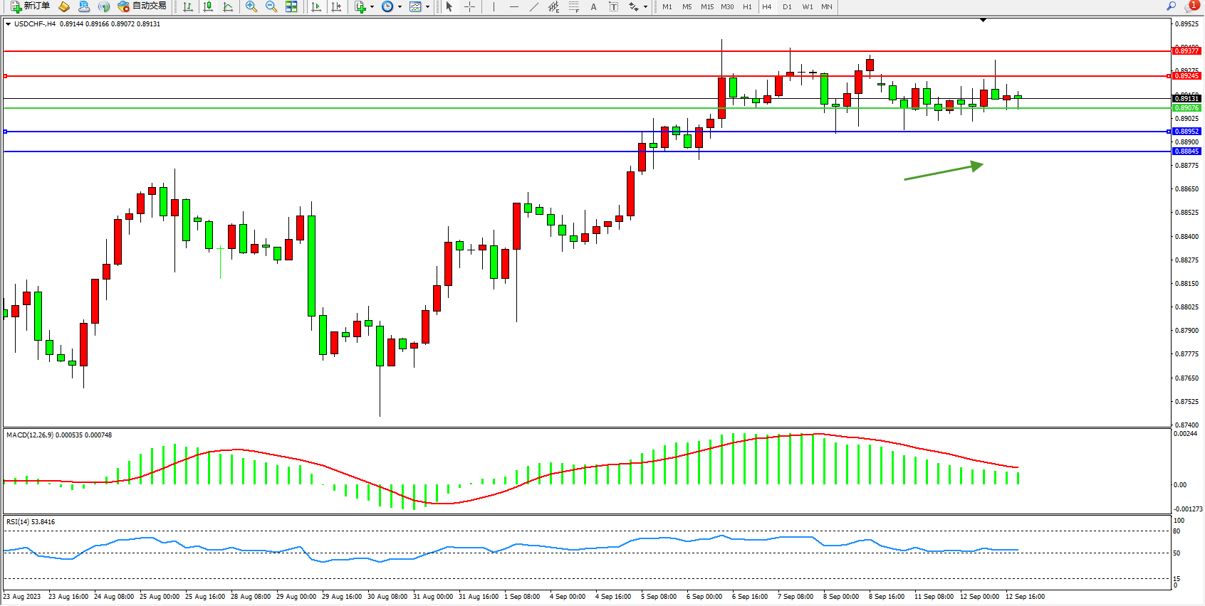 美元瑞郎USDCHF——4小时K线图显示:
