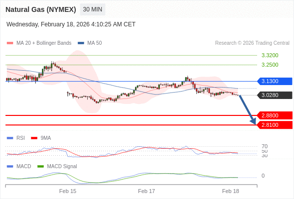 Natural Gas (NYMEX) (MAR6) 当日内: 看跌,在 3.1300 之下。